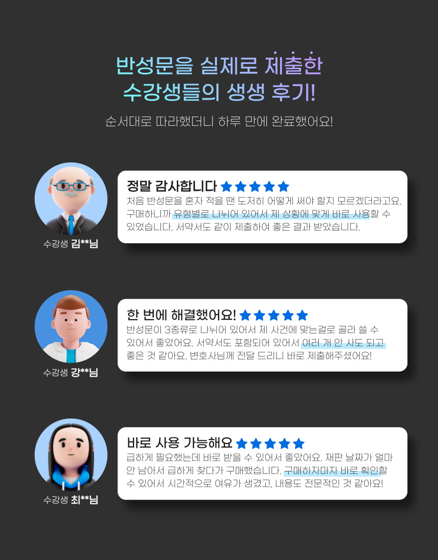 이수증 없이 반성문과 서약서 작성이 어려운 분들을 위한 템플릿 키트 상품 입니다.